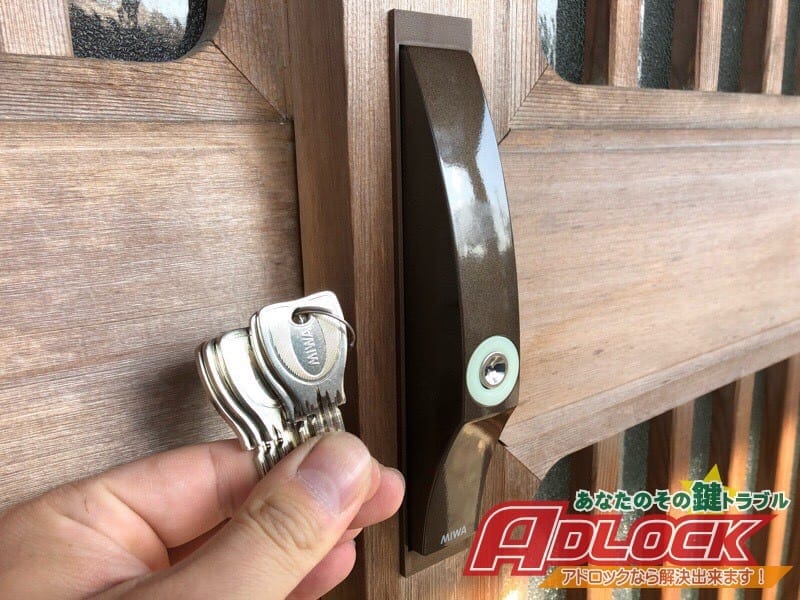 作業内容は、玄関解錠、玄関引戸錠、勝手口ノブ鍵交換(管理会社が)鍵を無くしてしまい、どこで無くしたかもわからない、予備もない為解錠後に玄関の引戸錠をmiwa PSSL09(鍵5本付き)に 勝手口ノブ(玉座)はショウワDAC2(鍵3本付き)に交換解錠から交換まで一気に終わり、早さに喜ばれました