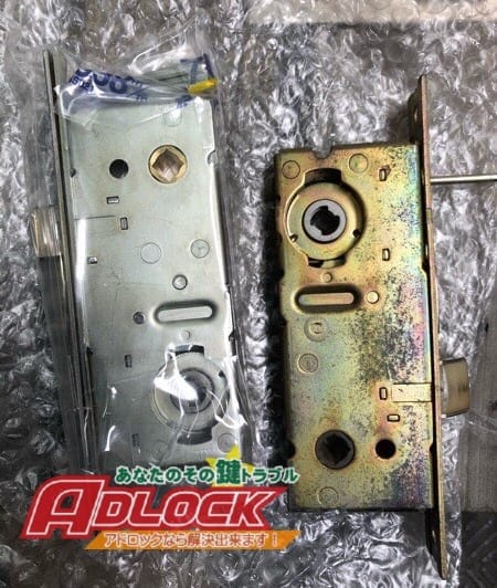 ベランダ出入口ドアの鍵(ケースロック)故障台所からベランダに通じるドアのレバーハンドルが戻らず垂れ下がったままでした。レバー等の外装部品に異常は無く、中身の本体(ケースロック)のバネ折れが原因でした。使用し続けられなくもないですが、折れた部品が他の部品に噛み込んだりすると扉自体開かなくなり、交換が困難になる可能性も考えられます。故障していた部品のケースロックのみ新しい部品と交換し作業完了です。miwa LAケースロック