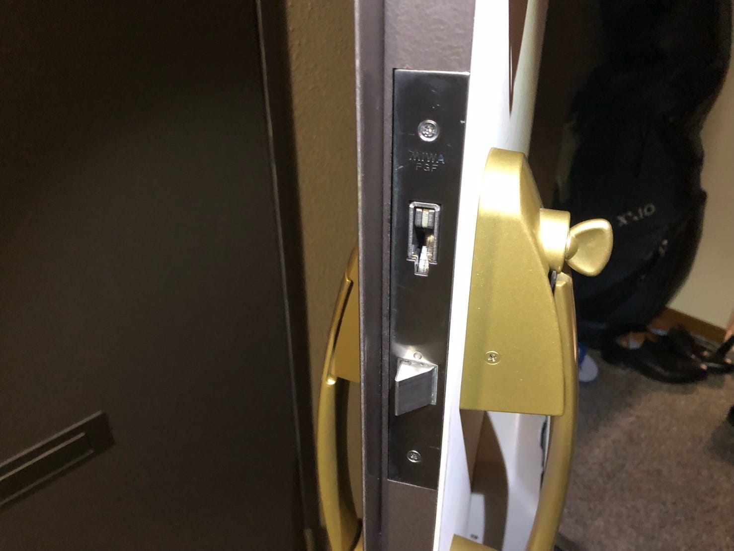 玄関ドアにはMIWAの2ロックプッシュプル錠が取り付けられていました。