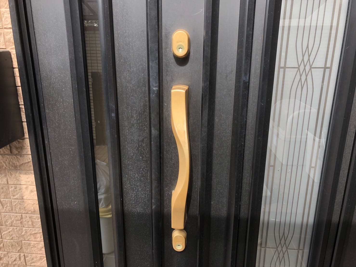 玄関ドアには1ロックのレバーハンドル錠が付いていました。