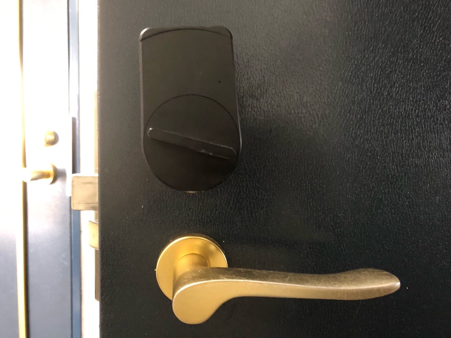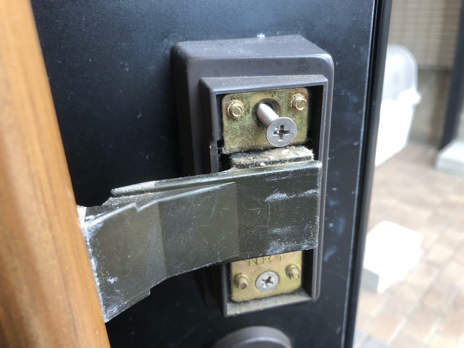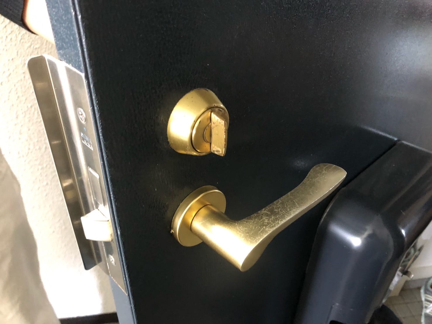 内側から確認すると、粘着テープで付けたスマートロックの故障で錠前の動きを妨げていたことが原因だと判明。