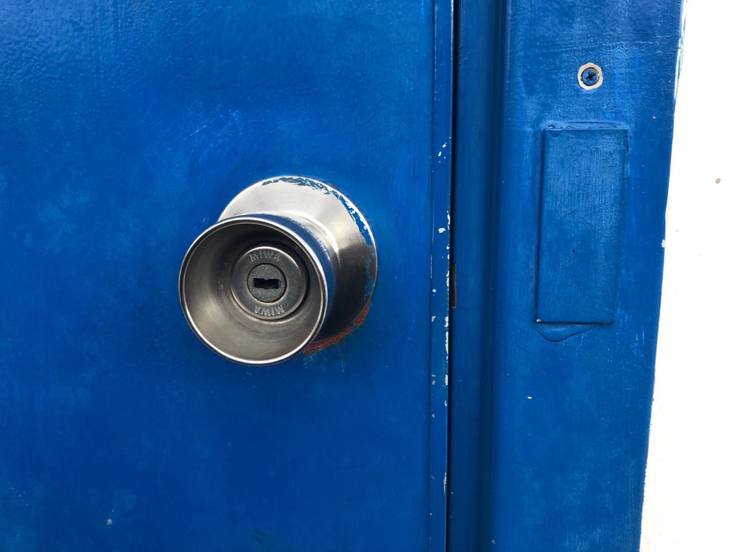 勝手口ドアにはMIWAのECシリンダー面付錠が。