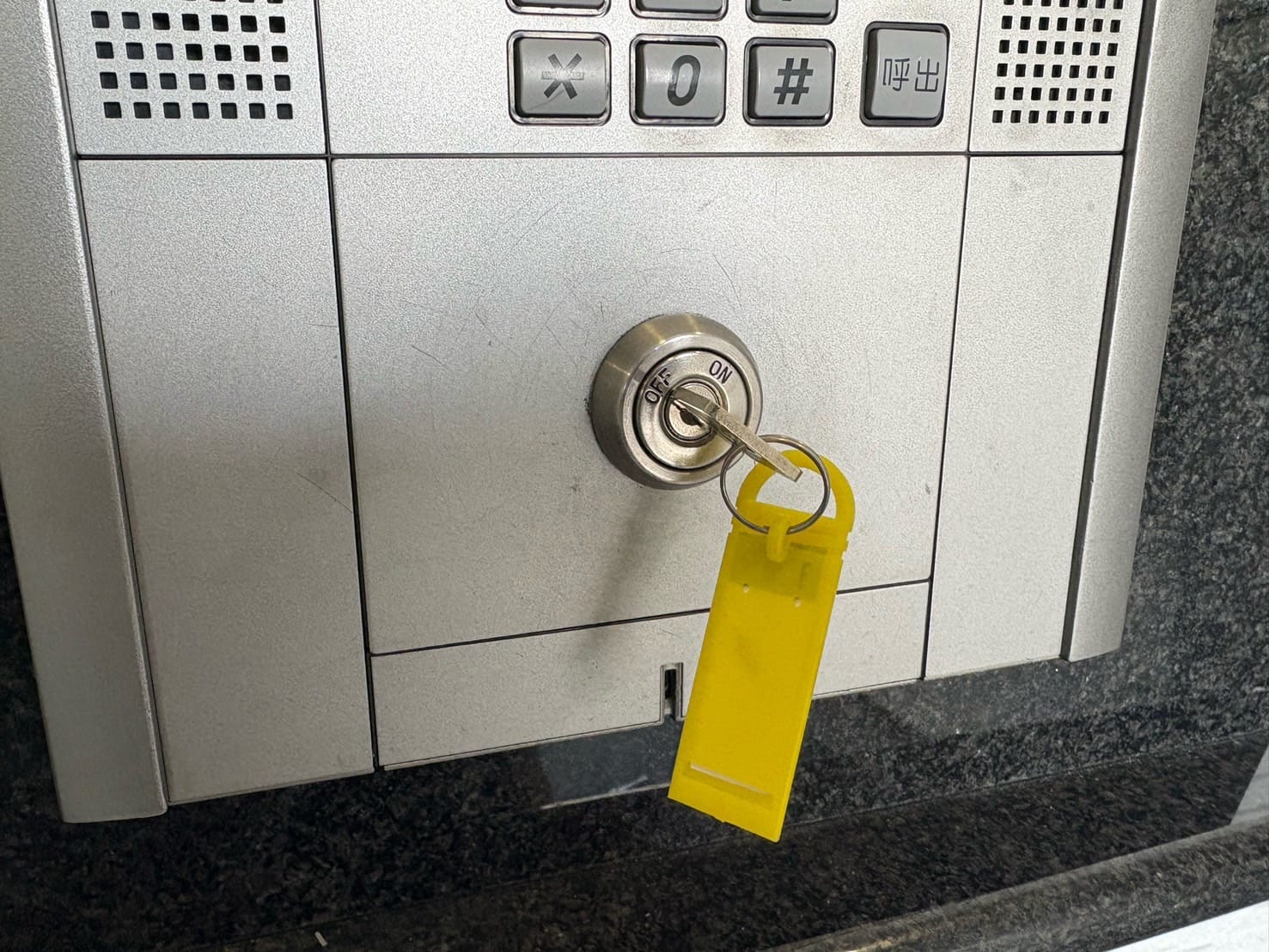 この電子錠には複数の解錠方法がありますが、シリンダーはダミー仕様、電子錠は電源が入らず非常電源供給は反応がない状態でした。