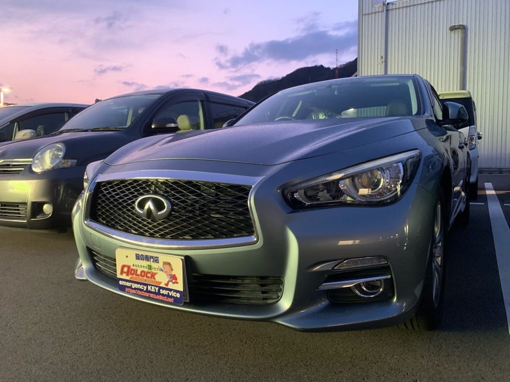 本日は広島市内の自動車販売店様より納車前のスカイラインにスペアキ―を作製してほしいとご依頼いただきました。