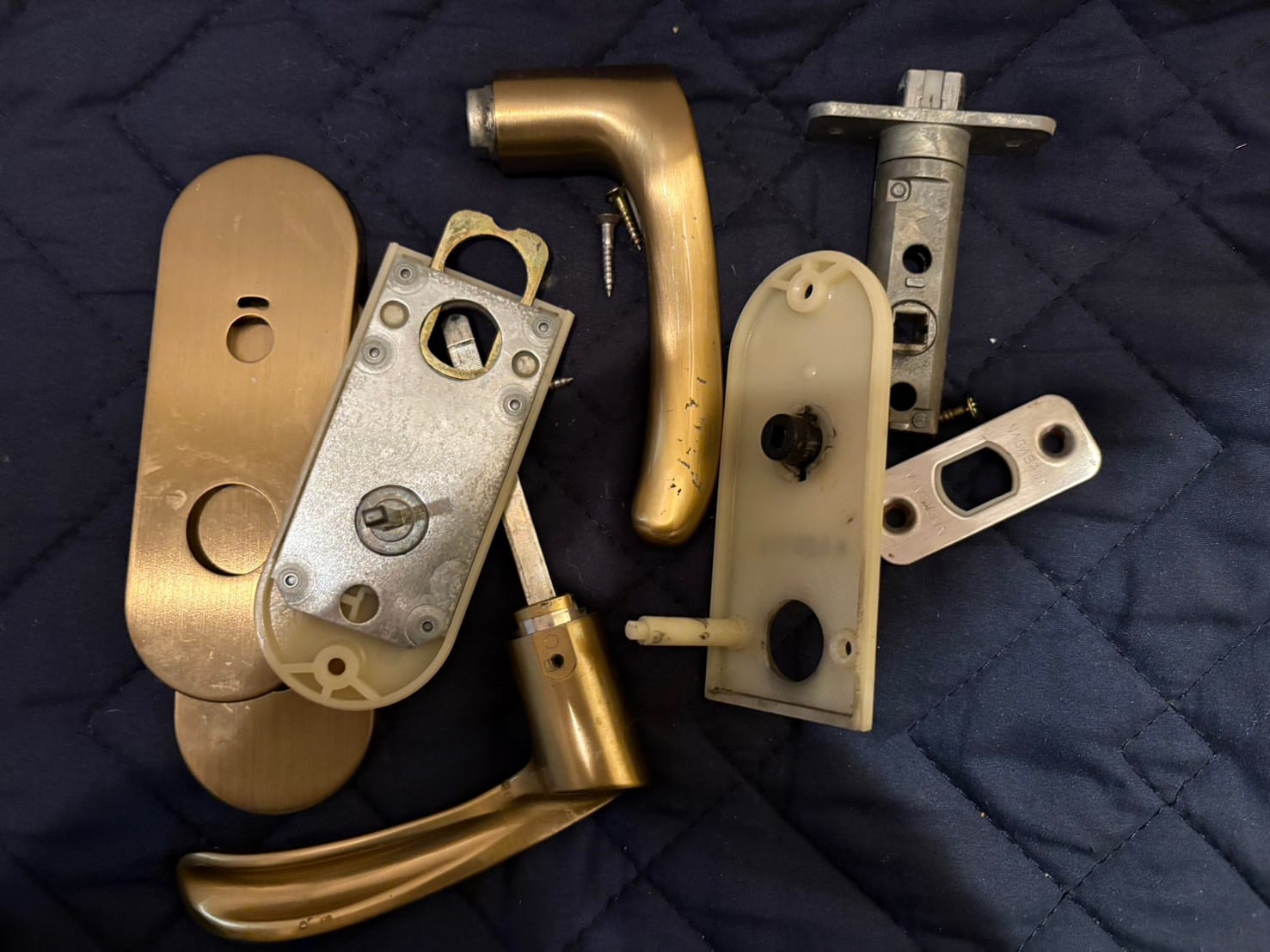 リビングドアも詳しく調べてみると、こちらはハンドル全体の故障ではなく、扉の横から飛び出している「ラッチ」と呼ばれる部品が故障していました。幸いラッチ部品のみの交換で直る状態だったためすぐに部品の交換を行い、こちらの不調も即日で改善されました!