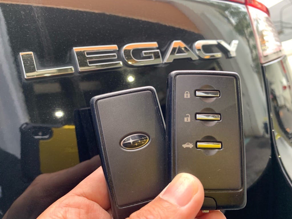 広島市内の自動車販売店様より、納車前のレガシィにスペアキ―を作製してほしいとご依頼いただき店頭へ向かいました。