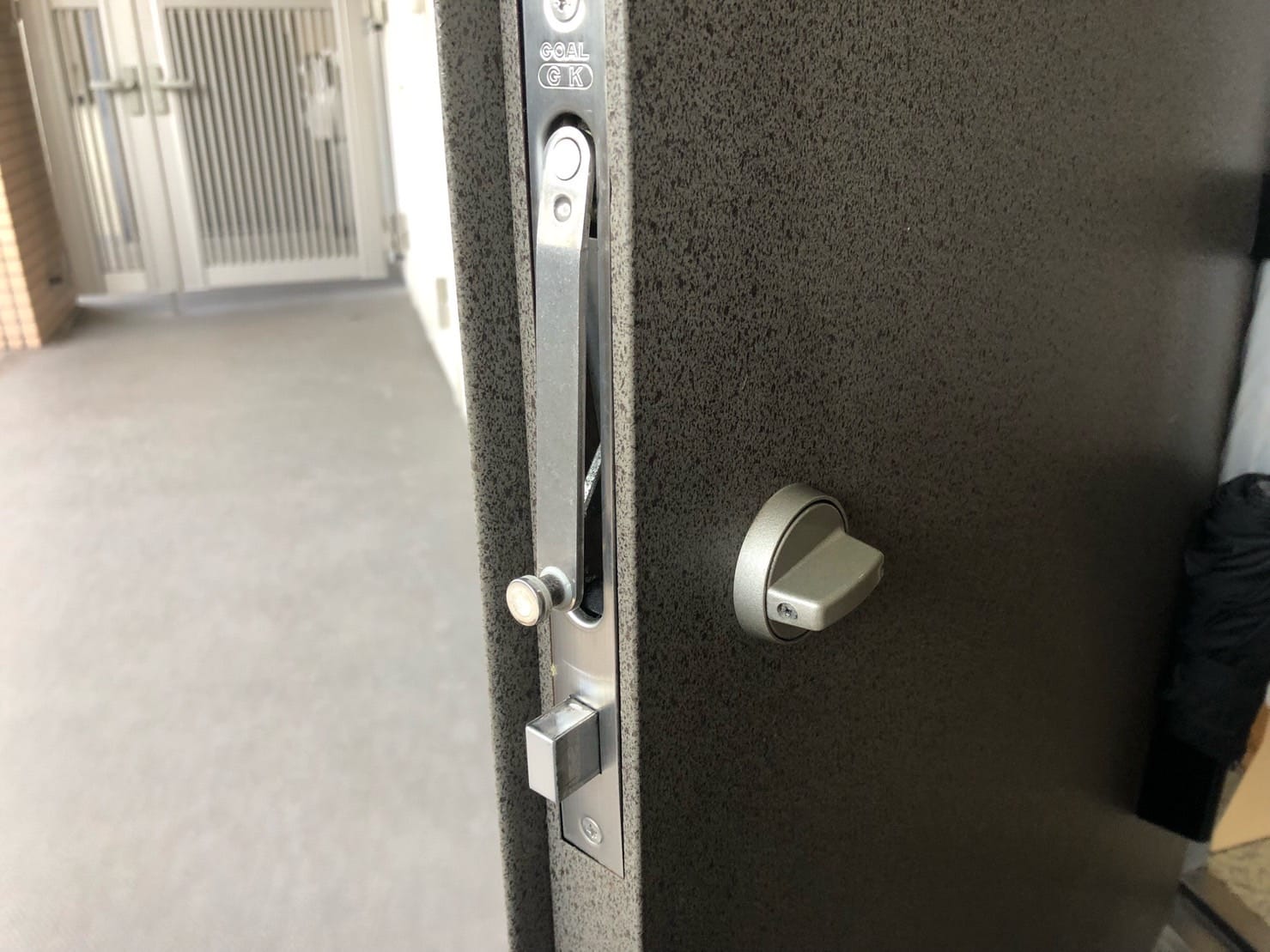 玄関ドアにはGOALのシリンダーが取り付けられていましたが、